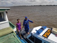 Sampit - Salah satu perpustakaan terapung milik Ditpolairud Polda Kalteng yang melekat pada Kapal Patroli XVIII-2005 ramai dikunjungi anak-anak pelajar Desa Bengkirai, Kab. Kotawaringin Timur (Kotim), Minggu (24/9/23).